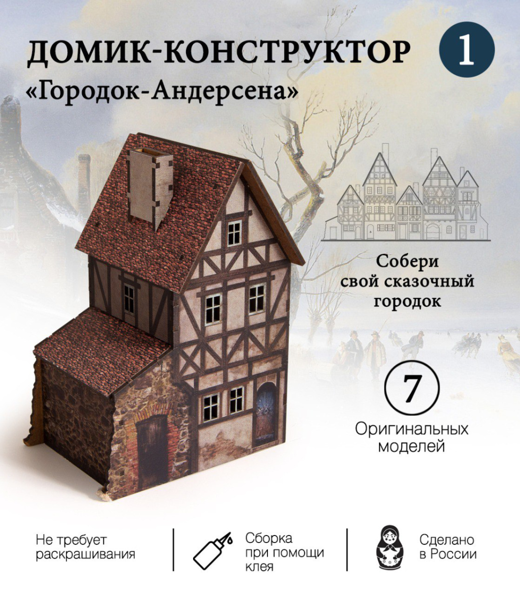 Подарите себе и своим близким удивительный мир сказки с помощью деревянного конструктора “Городок Андерсена”! Домик-конструктор серии “Городок Андерсена” - это уникальный проект, который позволит вам воплотить свои мечты о собственном сказочном мире в реальность. Этот набор станет отличным подарком для детей и взрослых, ведь он не только развивает фантазию и творческие способности, но и позволяет провести время с удовольствием и пользой. Конструктор состоит из множества элементов, которые легко соединяются между собой, позволяя вам создать целый город с домами (серия из 8ми домиков + Домик с часами и маятником). Все детали выполнены из высококачественной древесины, что обеспечивает их прочность и долговечность. Процесс сборки конструктора – это не только увлекательное занятие для всей семьи, но и способ развить свои творческие способности, моторику рук и логическое мышление. Вы сможете провести время с пользой и удовольствием, собирая свой собственный домик-конструктор “Городок Андерсена”.
