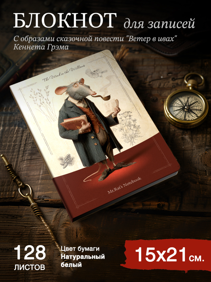 Блокнот с авторским оформлением, вдохновлённым образами сказочной повести "Ветер в ивах" Кеннета Грэма. В дизайне использованы характерные мотивы произведения: природные ландшафты, элементы классической иллюстрации и отсылки к персонажам. Оформление страниц блокнота выполнено в сдержанной цветовой палитре с акцентом на деталях, что делает его универсальным для работы, учёбы и личного планирования. Подходит для тех, кто ценит оригинальный дизайн и литературные отсылки в повседневных предметах.